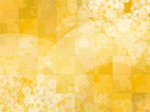 和風デザイン 年賀状向けイラスト素材 かすみと金箔と市松模様の背景画像 イメージマート